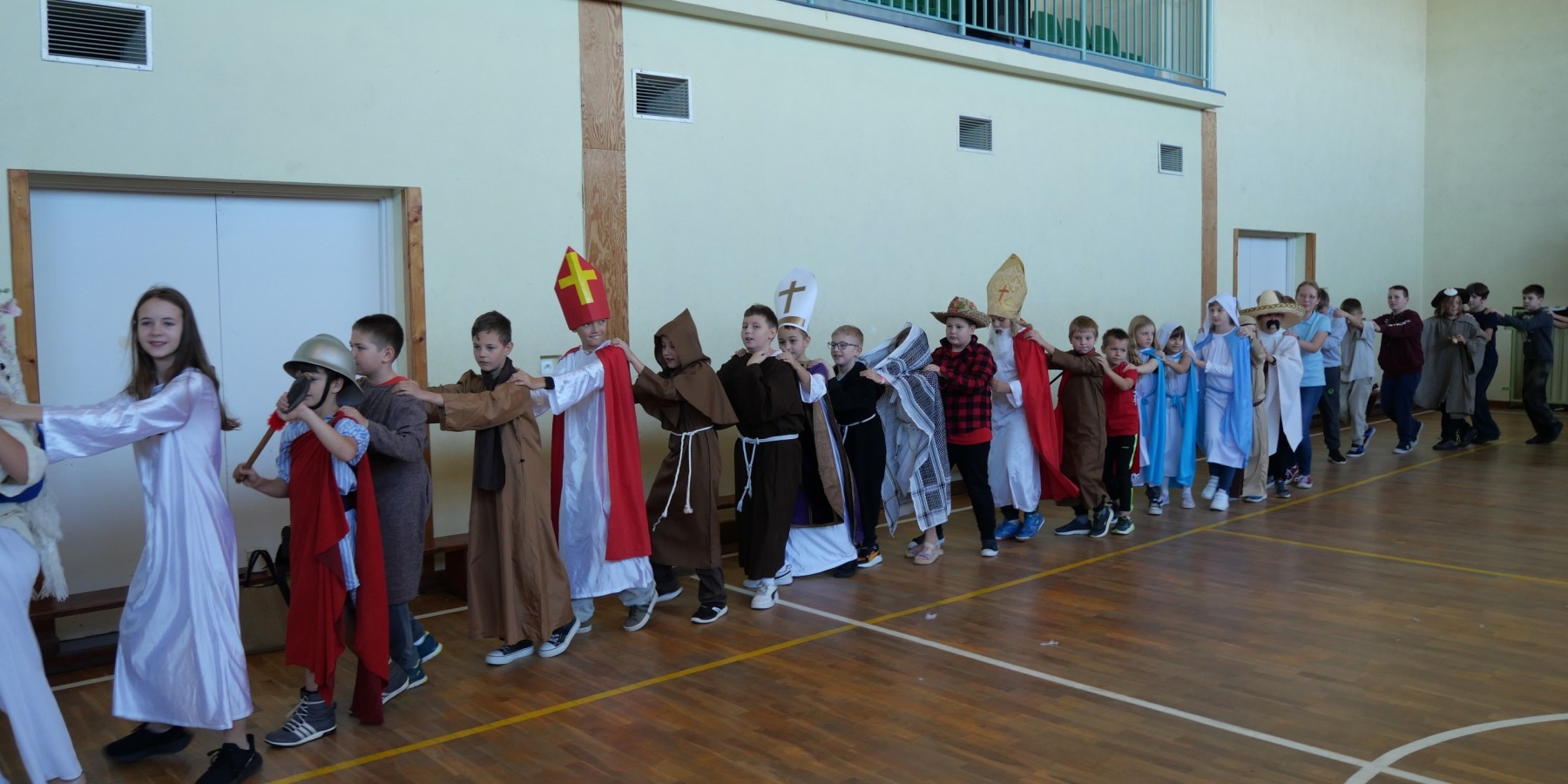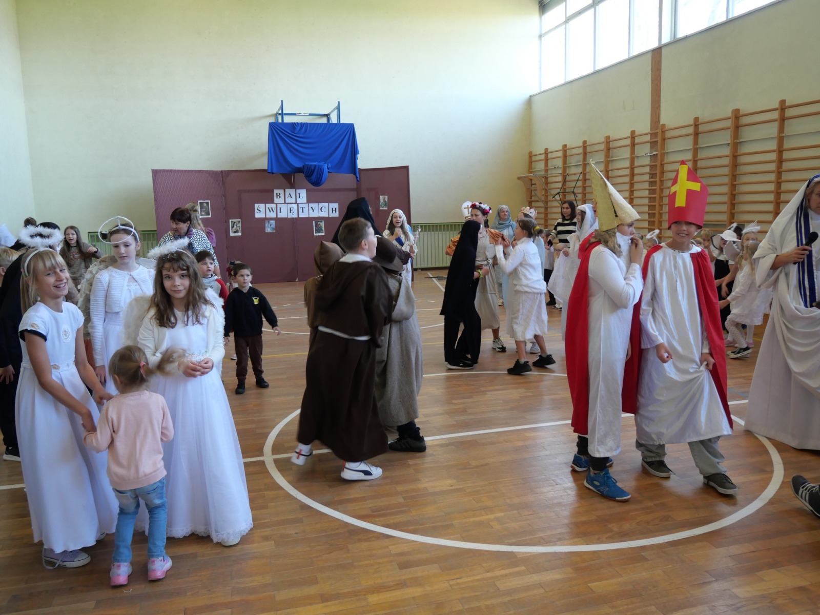 31 października w naszej szkole odbył się po raz kolejny Bal Wszystkich Świętych. Uczniowie przyszli przebrani za swoich ulubionych świętych. Wspólna zabawa, tańce oraz śpiew sprawiły, że ten dzień był pełen radości i uśmiechu.