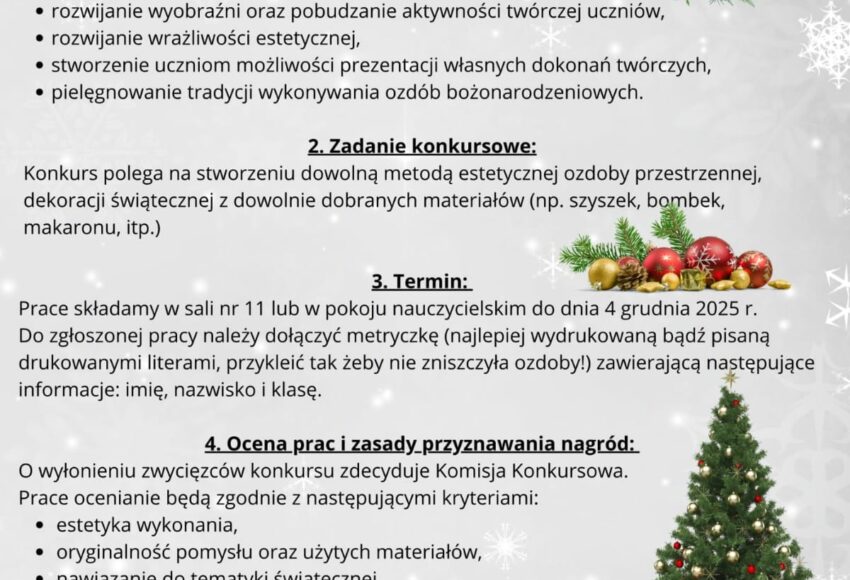 NAJPIĘKNIEJSZA ŚWIĄTECZNA OZDOBA BOŻONARODZENIOWA-KONKURS