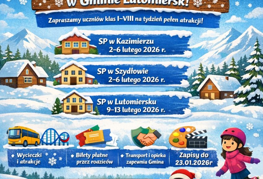 Drodzy Rodzice, Z radością informujemy, że dla uczniów klas I–VIII uczęszczających do szkół na terenie Gminy Lutomiersk zostaną zorganizowane ferie zimowe z atrakcyjnym programem zajęć i wyjazdów. Terminy ferii w naszej szkole: Szkoła Podstawowa im. Marii Konopnickiej w Kazimierzu – 02.02–06.02.2026 r. Ważne informacje: oferta dotyczy tylko szkoły, do […]