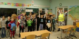 Odblaskowa krowa! Odblaskowe rogi! W kolorze odblasków i w burzy oklasków, przez szkołę