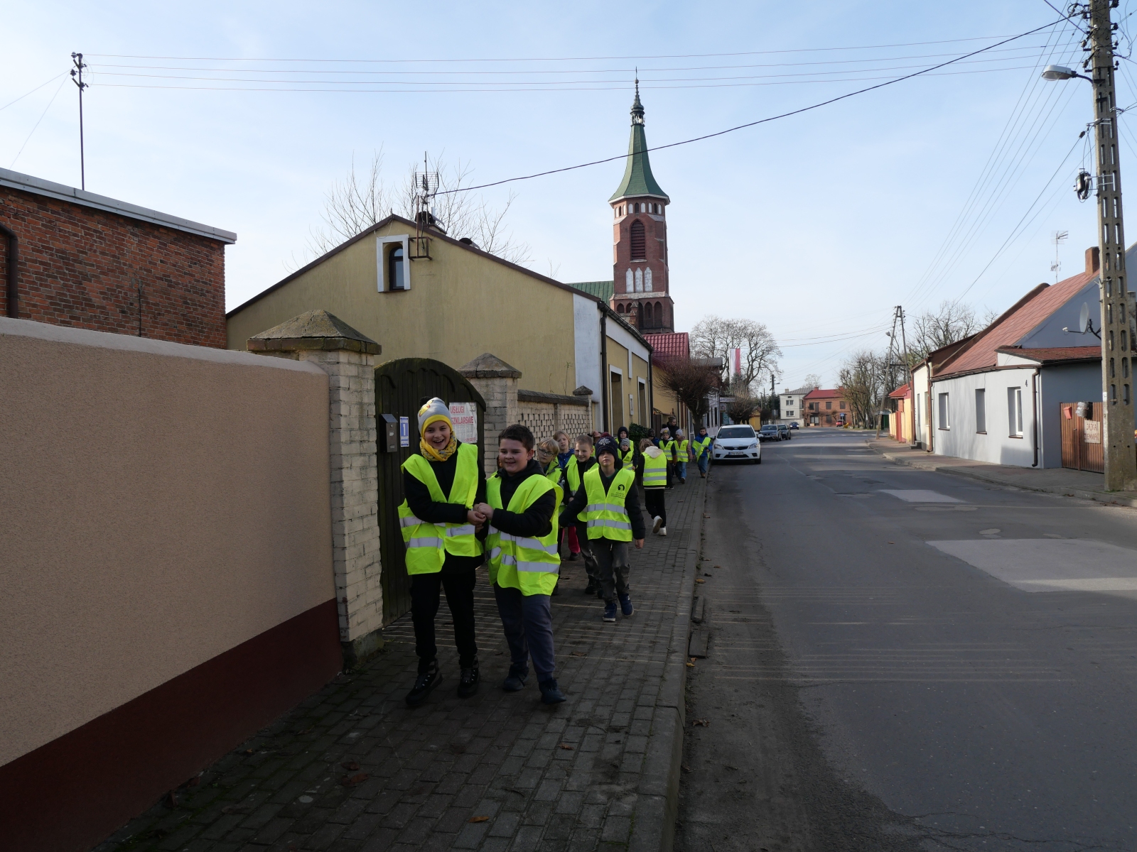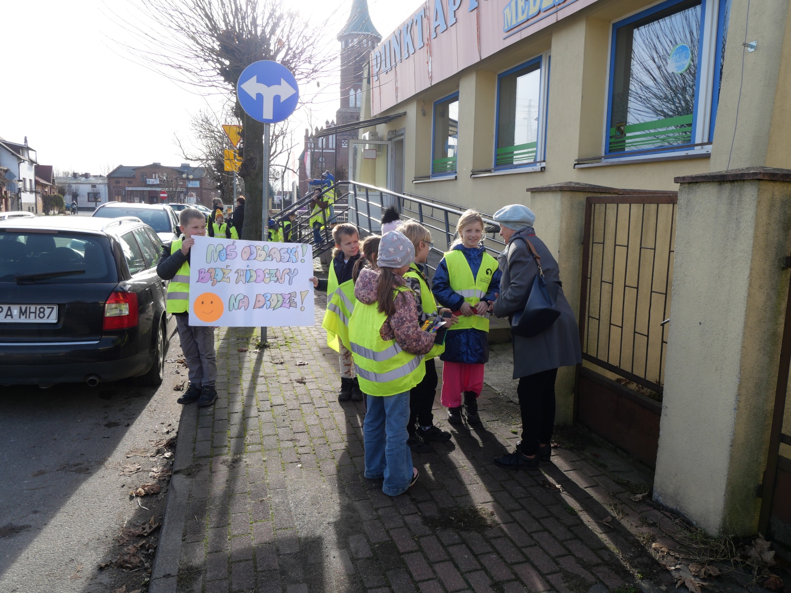 Uczniowie nie poprzestali na słowach i własnoręcznie przygotowali transparenty, które miały zwrócić uwagę przechodniów i kierowców. Wyposażeni w odblaskowe zakładki i rymowane ulotki edukacyjne, wyruszyli na ulice Kazimierza, aby rozdawać je mieszkańcom. Z takim entuzjazmem i zaangażowaniem można nas było dziś spotkać w centrum wsi, w sklepach, w okolicach szkoły i przystanków autobusowych — wszędzie tam, gdzie piesi są szczególnie narażeni na niebezpieczeństwo. Uśmiechy, hasła i błyszczące kamizelki zrobiły prawdziwą furorę wśród lokalnej społeczności.