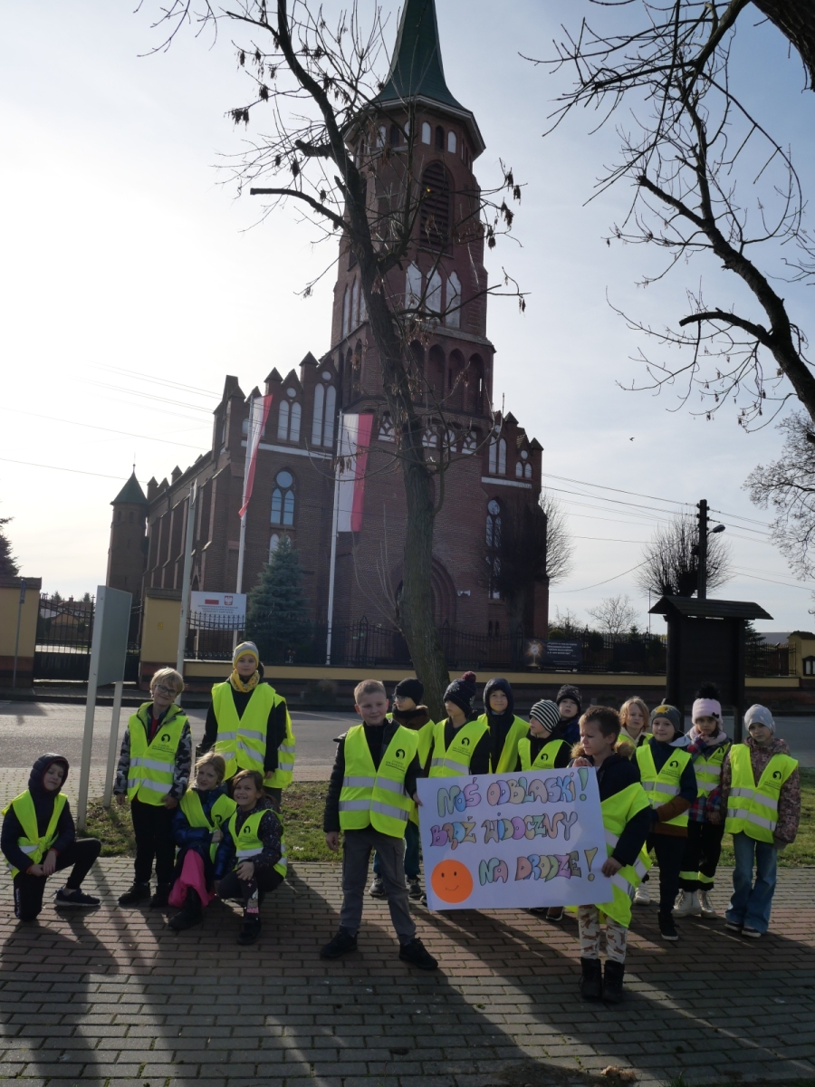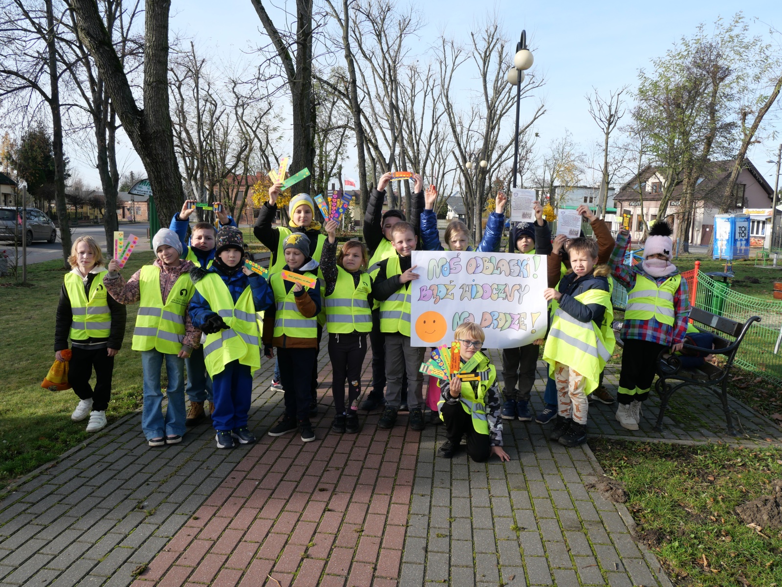 Nasi młodzi obywatele wzięli sprawy w swoje ręce i postanowili zadbać o bezpieczeństwo na drogach. Z pełnym zaangażowaniem i energią zorganizowali lokalną akcję w ramach ogólnopolskiego konkursu „Odblaskowa szkoła 2025”. Ich celem było promowanie zasad bezpiecznego poruszania się po drogach, noszenia kamizelek odblaskowych oraz innych elementów odblaskowych, zwłaszcza po zmroku, by zwiększyć widoczność pieszych i rowerzystów i poprawić bezpieczeństwo wszystkich uczestników ruchu drogowego.