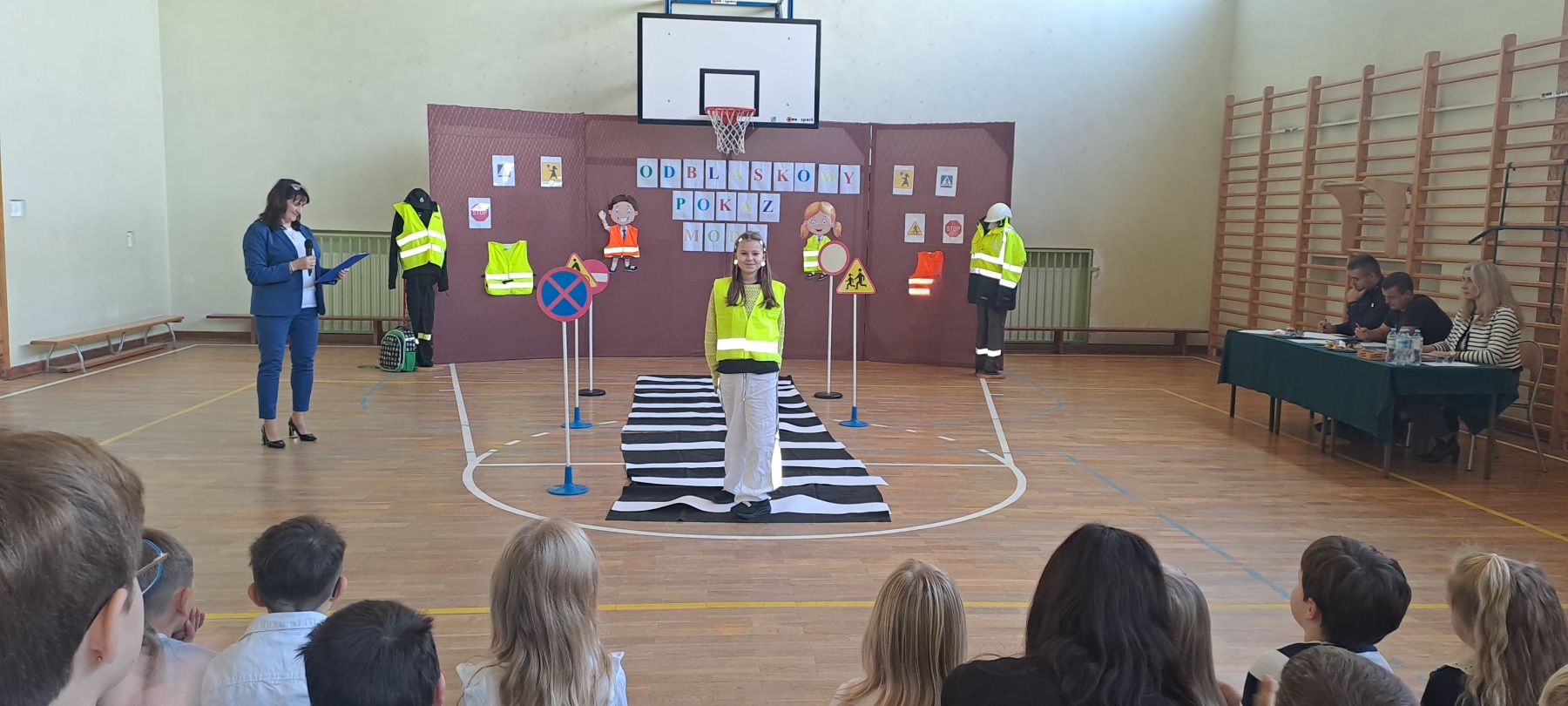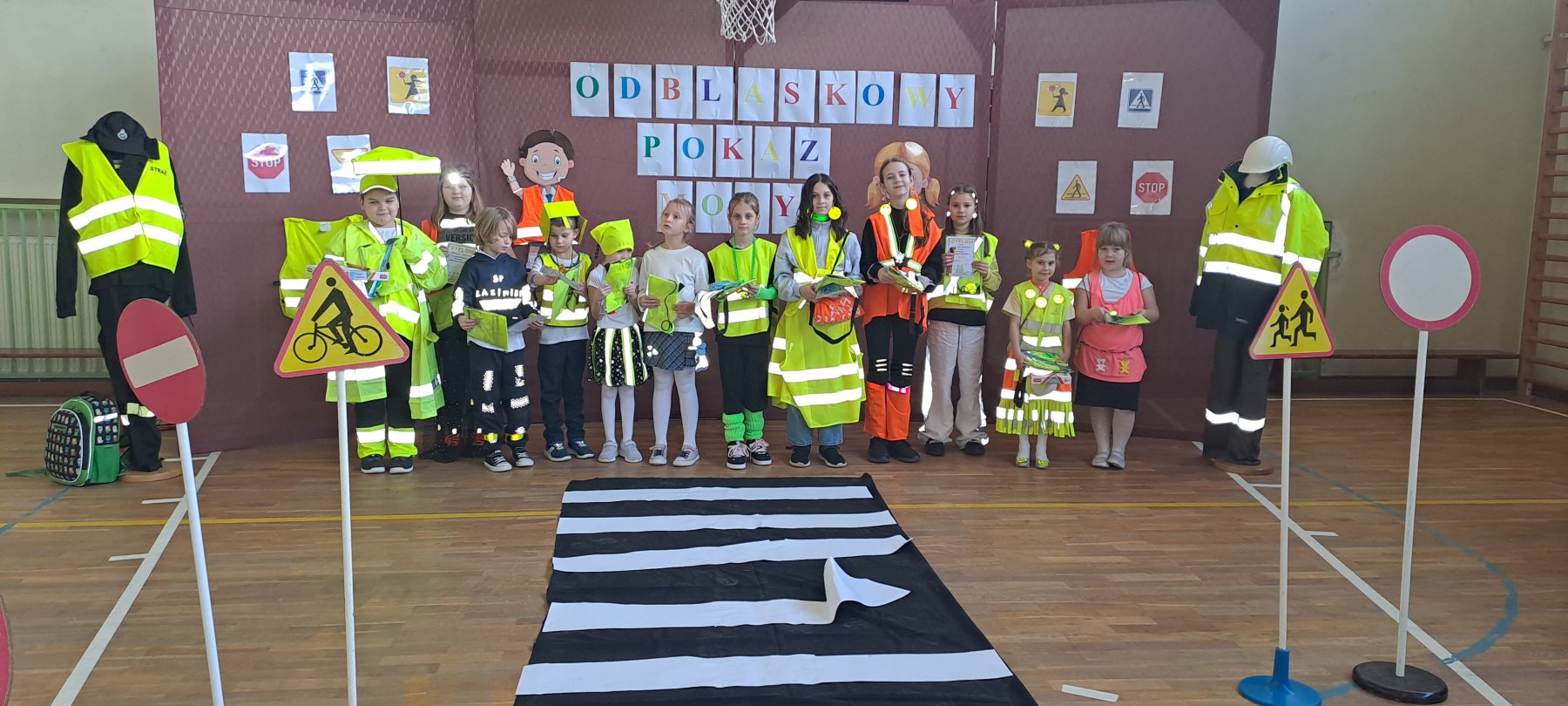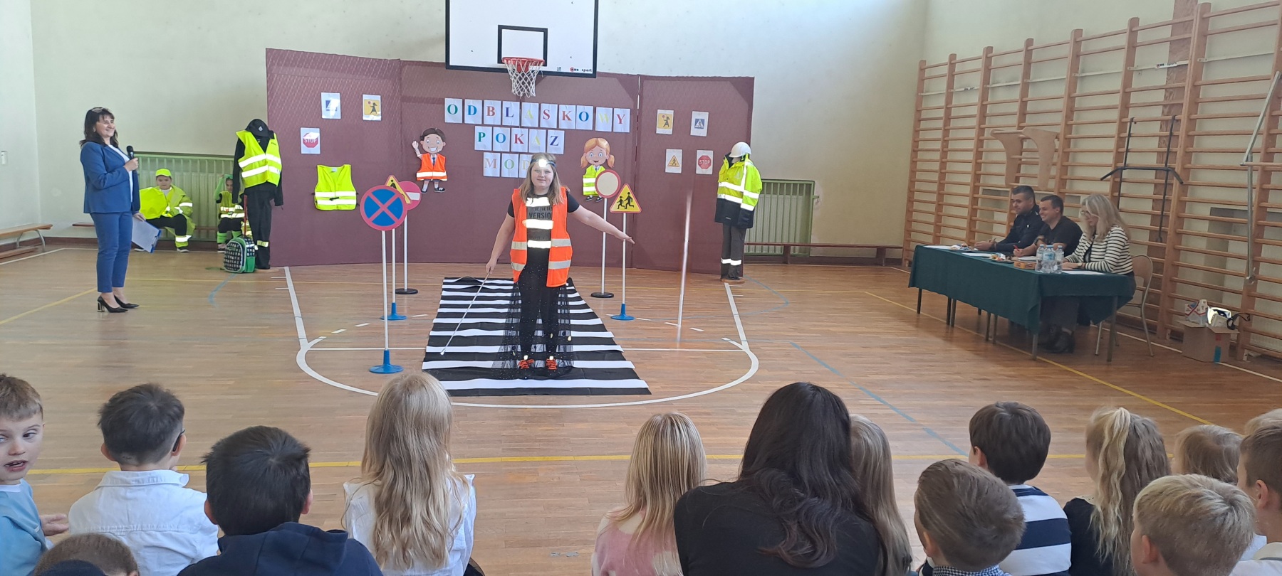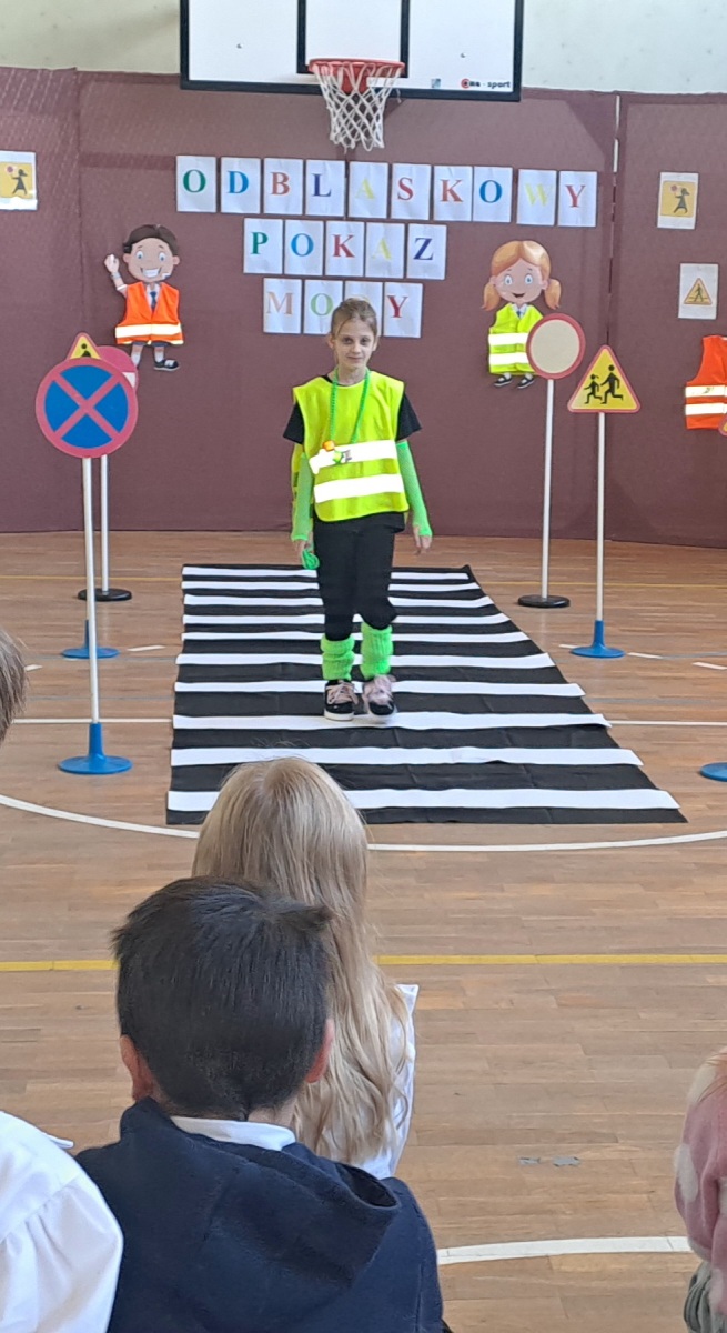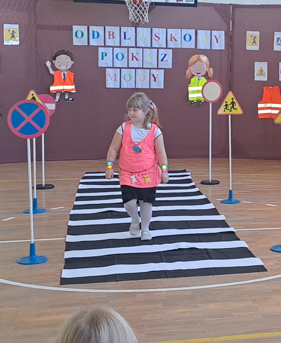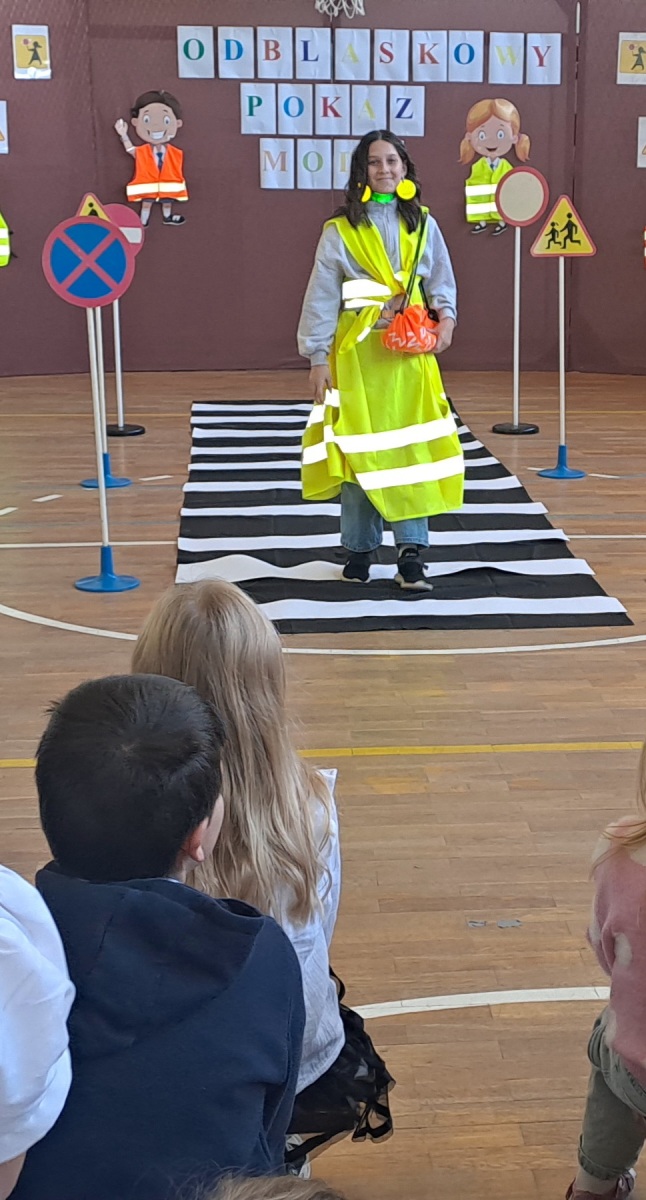 Podczas pokazu uczniowie zaprezentowali kreatywne stroje wyposażone w różnego rodzaju odblaski – kamizelki, opaski, naszywki, a nawet całe stylizacje stworzone specjalnie na tę okazję. Na wybiegu nie zabrakło zarówno eleganckich, jak i sportowych kreacji, a wszystko to w atmosferze świetnej zabawy.