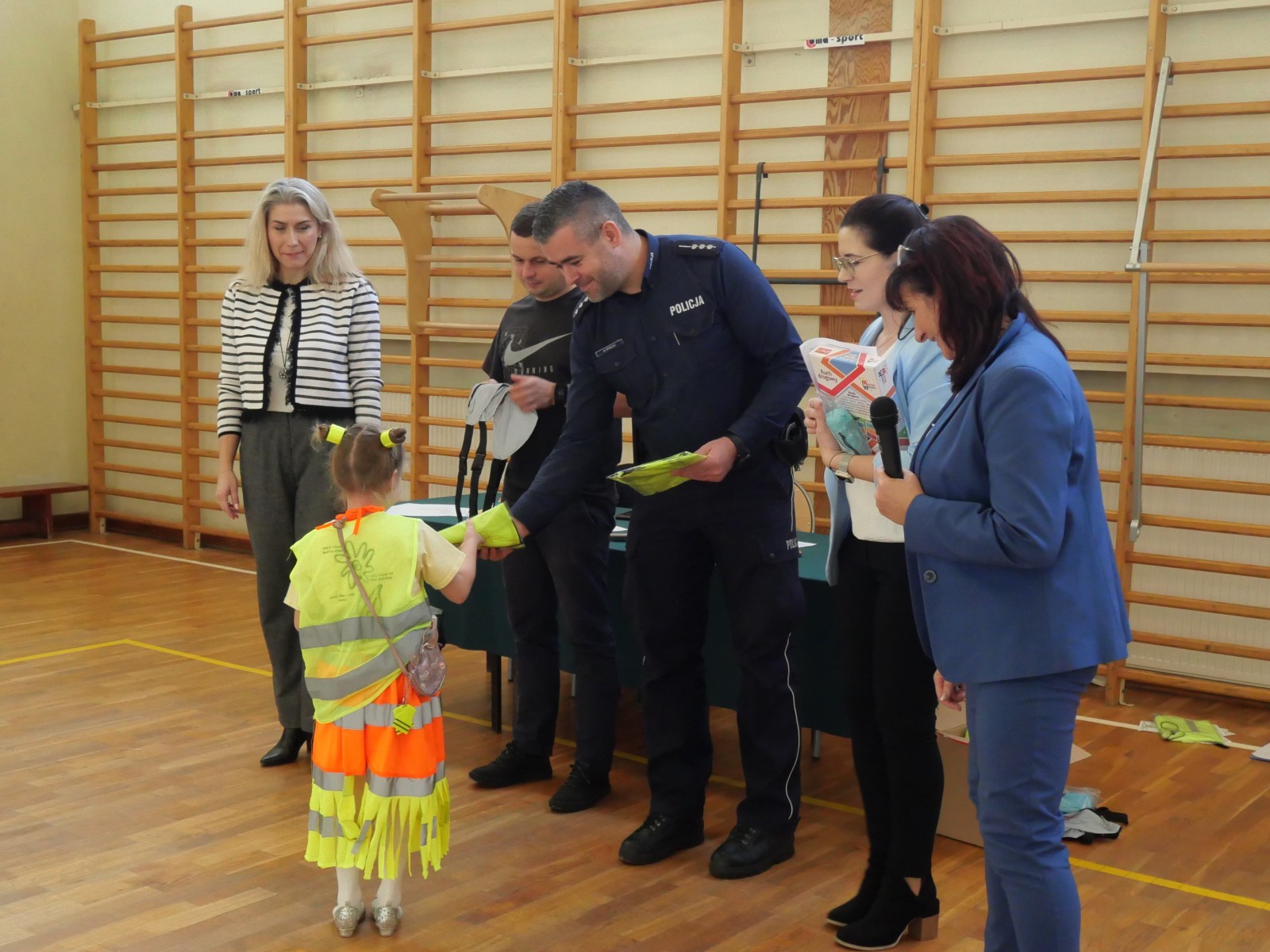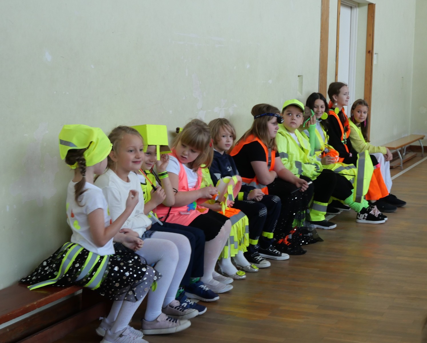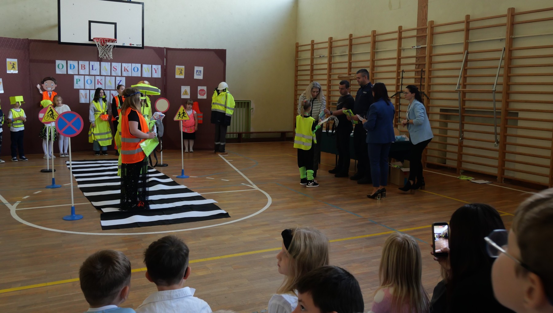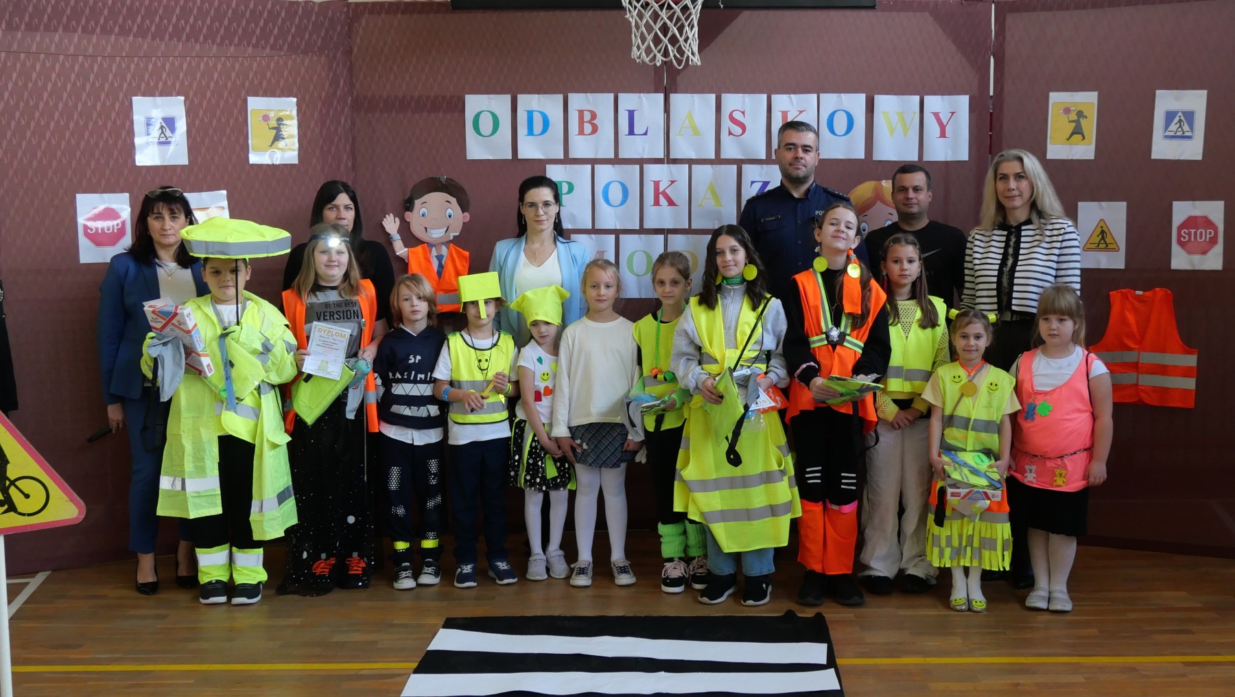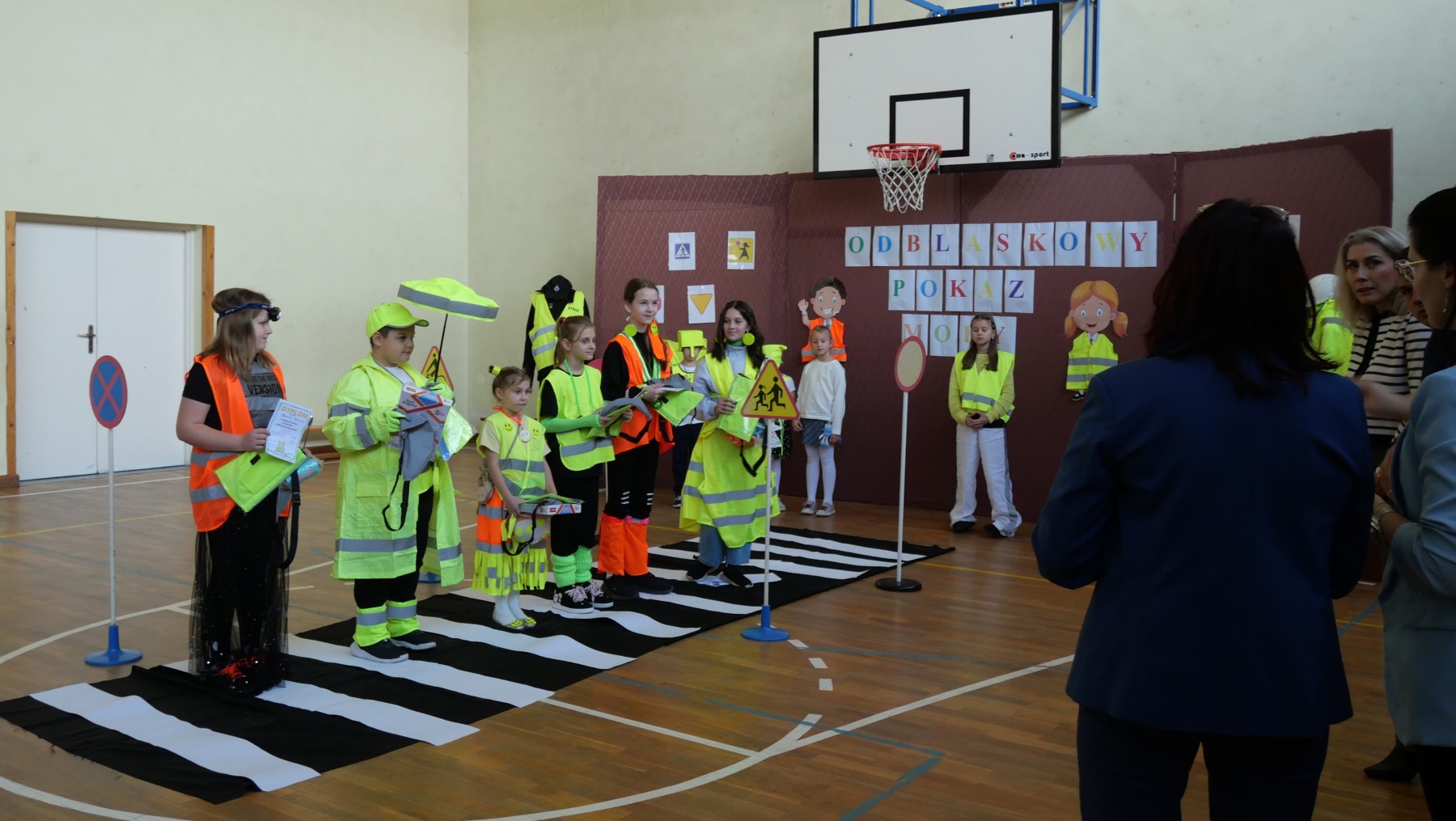 Podczas pokazu uczniowie zaprezentowali kreatywne stroje wyposażone w różnego rodzaju odblaski – kamizelki, opaski, naszywki, a nawet całe stylizacje stworzone specjalnie na tę okazję. Na wybiegu nie zabrakło zarówno eleganckich, jak i sportowych kreacji, a wszystko to w atmosferze świetnej zabawy.
