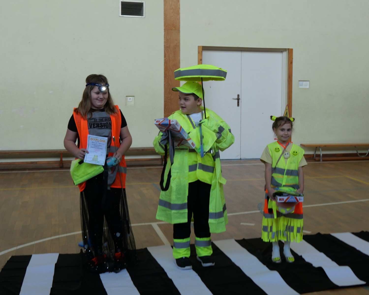 W jury zasiadali Dyrektor szkoły; Pan Kamil Krasnopolski, Pani Iwona Karbowniczak-Mróz-wicedyrektor szkoły oraz Pan Wiktor Szymczak-Komendant Policji we Wrzącej-st. asystent, którzy oceniali nie tylko wygląd, ale przede wszystkim pomysłowość i funkcjonalność prezentowanych strojów. Najbardziej kreatywni uczestnicy otrzymali nagrody, każdy z uczestników pokazu otrzymał dyplomy i drobne upominki odblaskowe.
