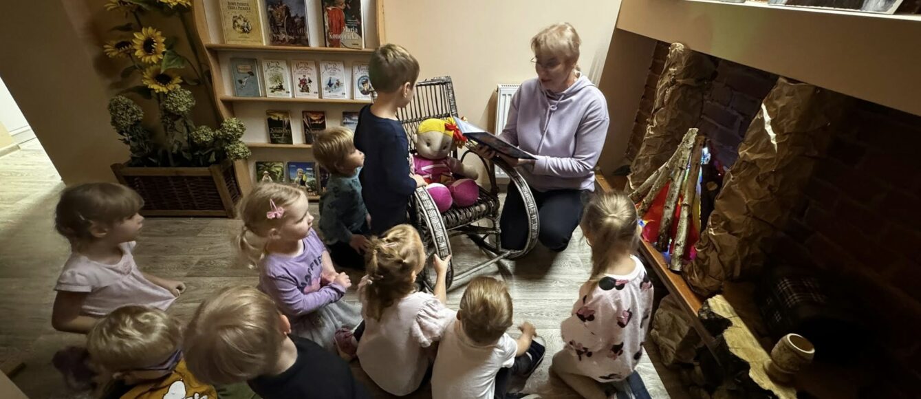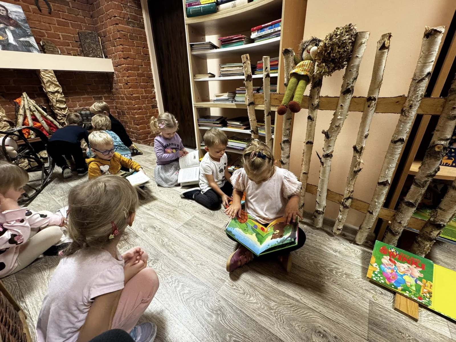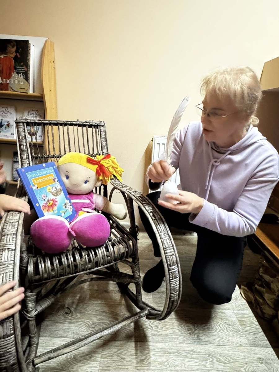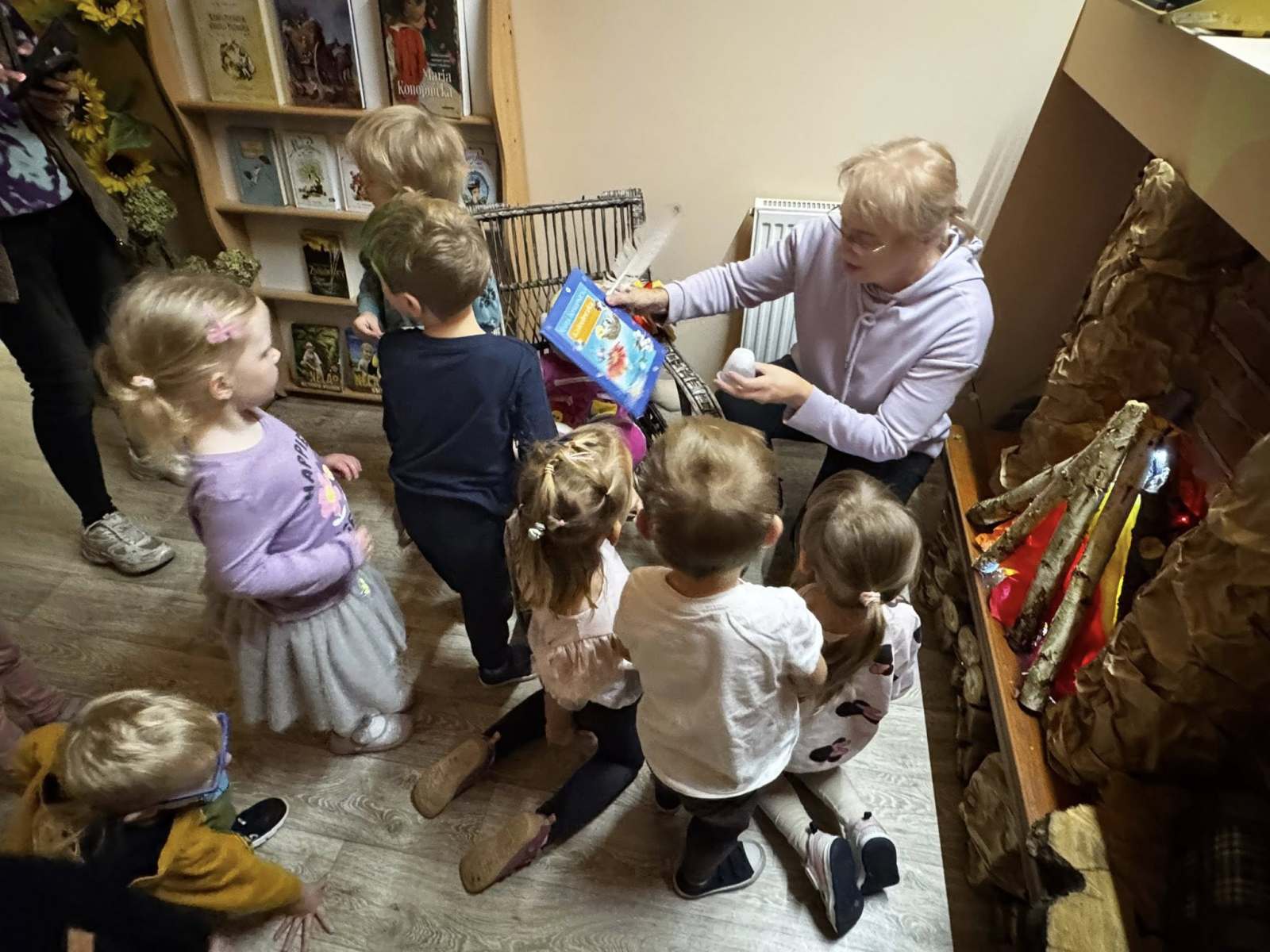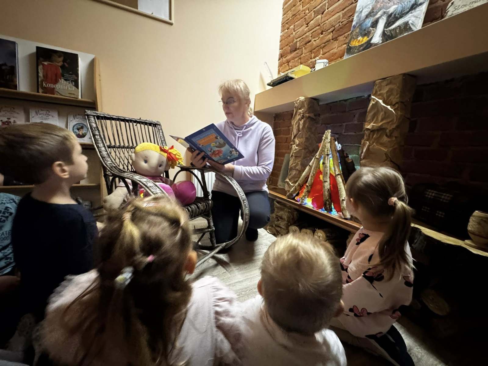 Dzieci wsłuchiwały się w przeczytane opowiadanie, oglądały książki, a to wszystko w pięknym klimacie i pod czujnym okiem „Sowy, mądrej głowy”
