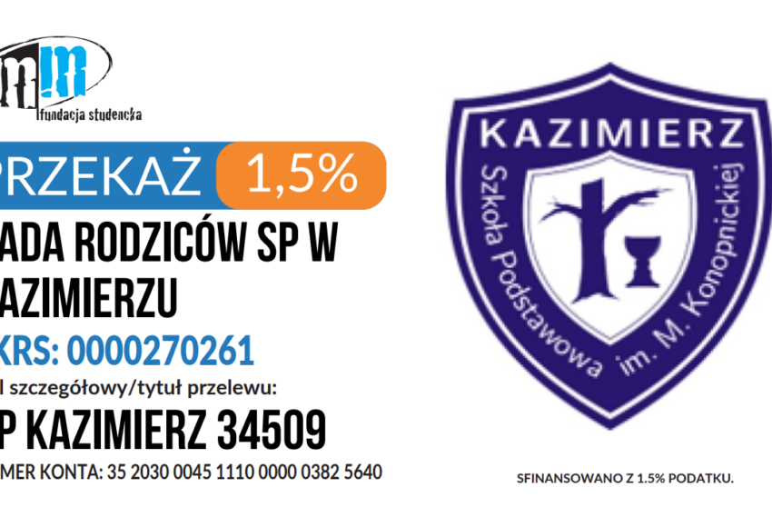 Wspieraj naszą szkołę przekazując 1,5% podatku! To nic Cię nie kosztuje, a dla naszej szkoły znaczy bardzo wiele!