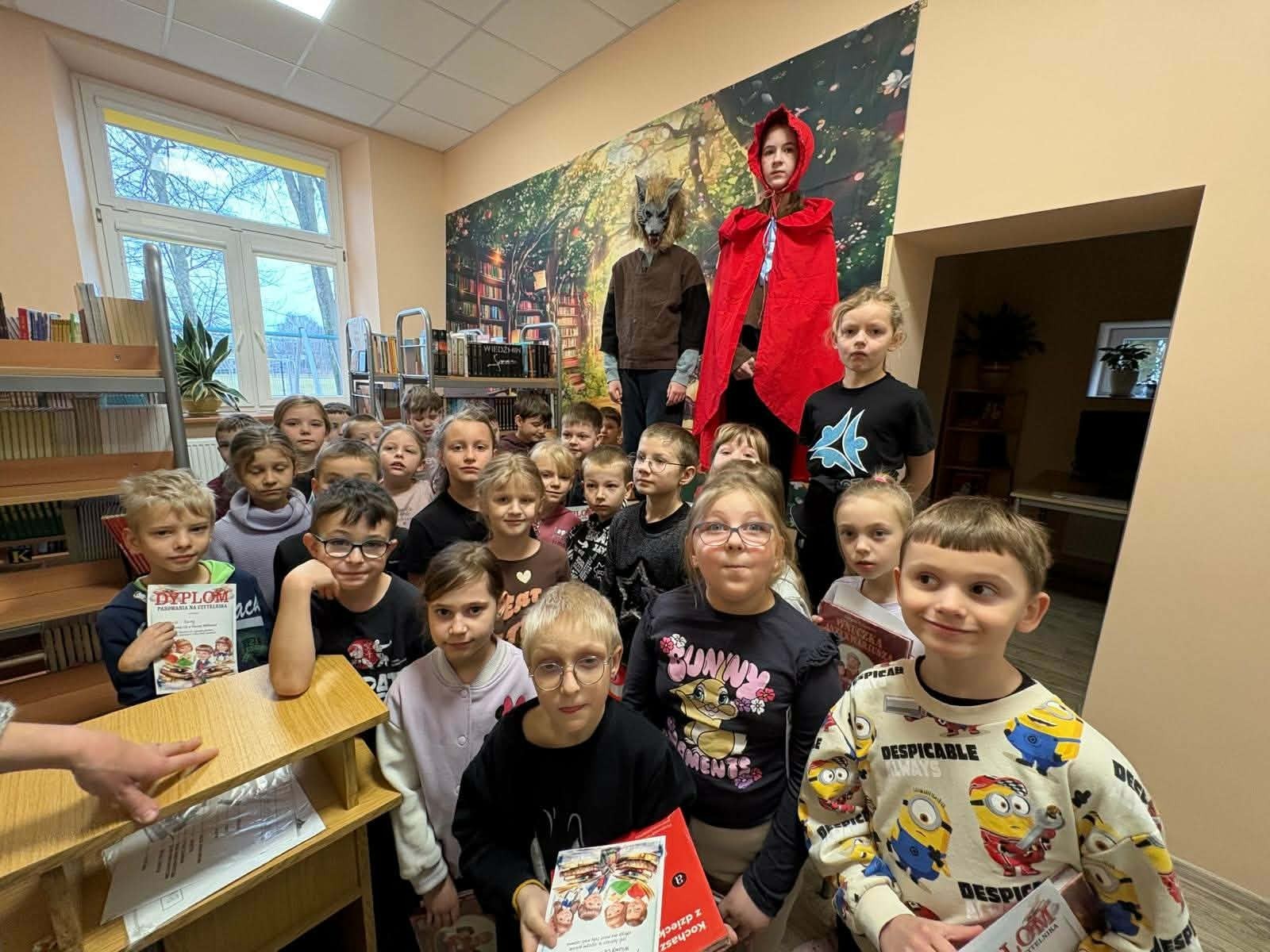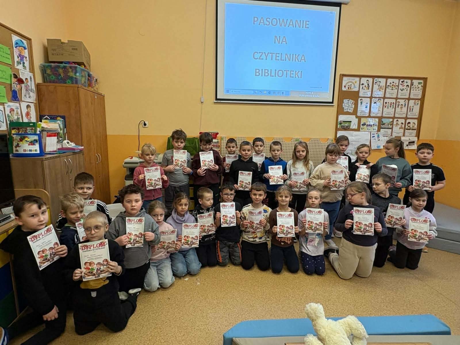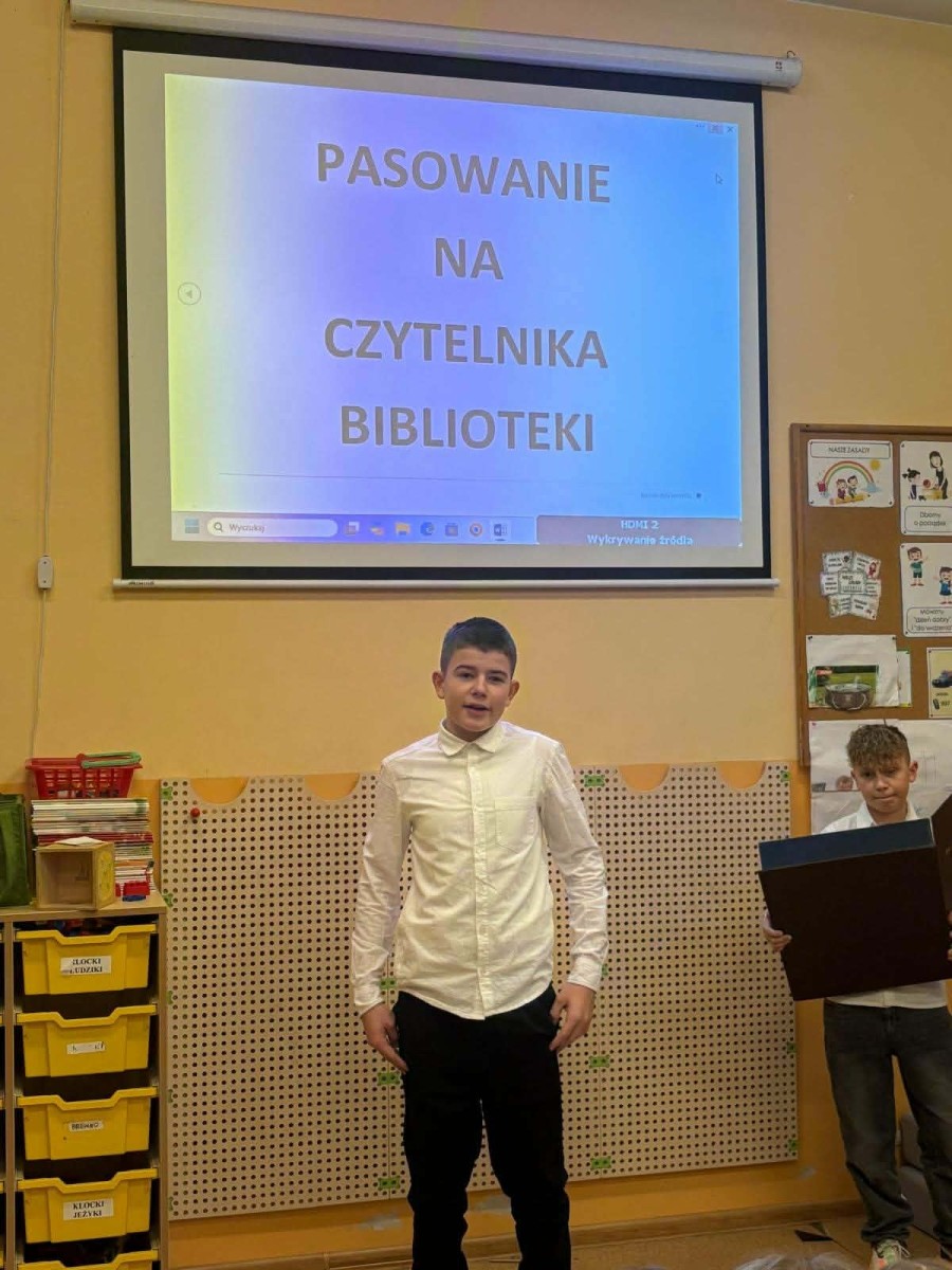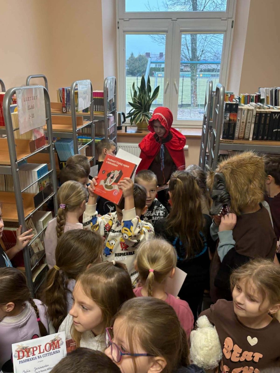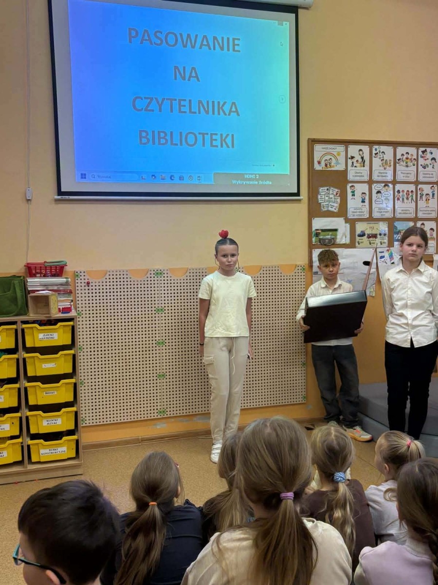 W naszej szkole odbyła się wyjątkowa uroczystość – pasowanie uczniów klas pierwszych na czytelników biblioteki! To ważny moment, w którym najmłodsi oficjalnie dołączają do grona miłośników książek. Podczas spotkania dzieci dowiedziały się, jak należy dbać o książki, jak korzystać z zasobów biblioteki oraz dlaczego warto czytać każdego dnia. Obejrzały występ starszych kolegów, a baśniowi bohaterowie towarzyszyli pierwszakom w tym wydarzeniu na każdym kroku. Nie zabrakło uśmiechów, zagadek czytelniczych oraz wspólnego ślubowania. Na zakończenie każdy pierwszoklasista otrzymał pamiątkowy dyplom i upominek. To był dzień pełen radości i nowych inspiracji! Mamy nadzieję, że od dziś książka stanie się dla naszych uczniów wiernym przyjacielem i towarzyszem codziennych przygód.